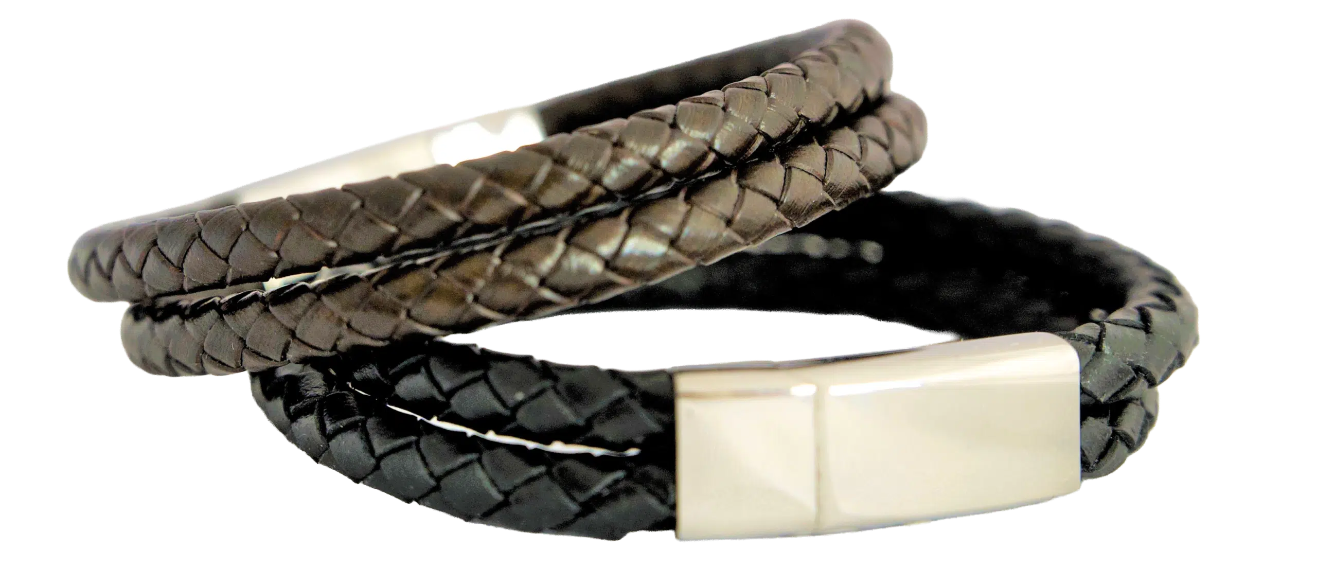 Type: 925 – Armbånd med dobbel lærreim – sort